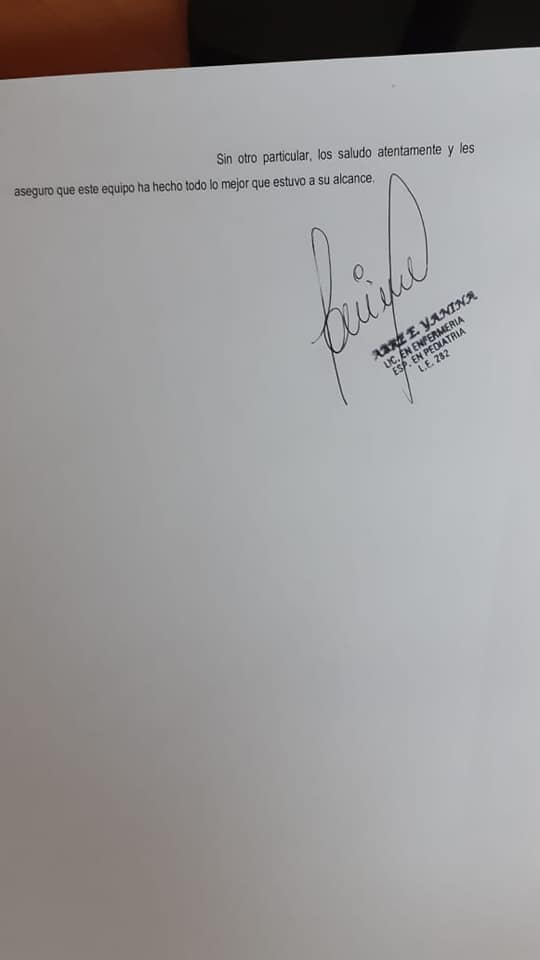 En la nota enviada al director del Hospital, Dr. Mauricio Fernández, Fabre detalló claramente la situación del área que estaba bajo su responsabilidad. Y seguirá estando, según lo indico a este medio, “hasta que venga otro equipo”.