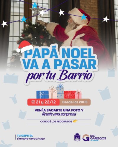 Papá Noel recorrerá los barrios de Río Gallegos este lunes por la noche Desde las 20 horas, Papá Noel realizará un