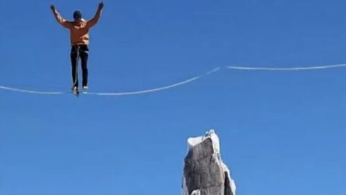 Hazaña en la Patagonia: caminaron sobre una cuerda floja a 2.300 metros de altura entre las montañas