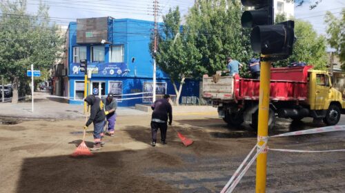 Falla cloacal en pleno centro obligó al Municipio a tomar medidas paliativas El Municipio de Río Gallegos intervino en la calle