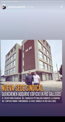 Mientras la producción de petróleo en Santa Cruz registra una caída constante, con un promedio de pérdidas que supera el 7% interanual, y más de 5.000 trabajadores fueron desvinculados de la actividad, el Sindicato de Petroleros Privados, liderado por Claudio Vidal, celebra la adquisición de un lujoso edificio en pleno centro de Río Gallegos. Las imágenes difundidas por el propio Pablo González en redes sociales muestran una estructura moderna y costosa que será destinada a la nueva sede sindical.