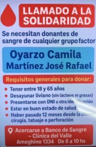 Camila, madre de Thadeo, de tres años, se encuentra internada en la Clínica del Valle, donde requiere transfusiones de sangre y plaquetas de manera constante. La falta de familiares y conocidos en la ciudad chubutense complica la posibilidad de reunir donantes, por lo que el pedido de colaboración se volvió urgente.