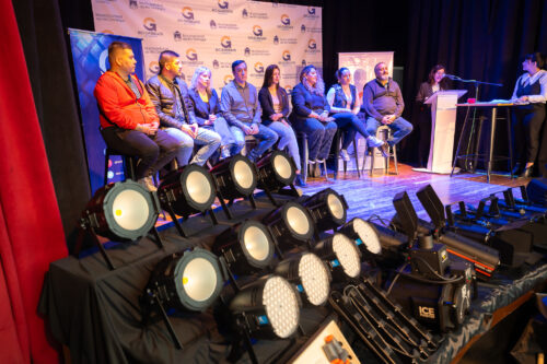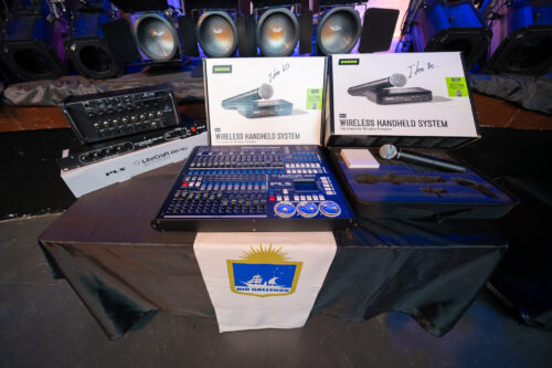 Durante el acto, se formalizó la entrega de nuevos equipos para el Teatro Municipal, entre los que se destacan 4 luces elipsoidales LED de 50w (Venetian); 8 luces LED PC plano convexo de 200w (E-Lighting Pro); 4 luminarias para Led-Par de 54x3w RGB (Big Dipper); 4 luminarias Fresnel LED bi-color de 200w (Tec Show); 12 clamps de iluminación (E-Lighting); 1 consola controladora de luces 1024 PLS; 1 máquina de humo bajo con hielo seco (Tec Show); 1 splitter DMX de 4 salidas (Litecrift) ;1 consola digital WiFi XR16 Behringer; 2 bafles activos Bluetooth JBL EON 715; 2 micrófonos inalámbricos Shure con cápsula SM58 y Beta 58; 2 drivers Peavy RX22; y cableado completo DMX y de audio, fichas XLR, zapatas y accesorios de instalación.