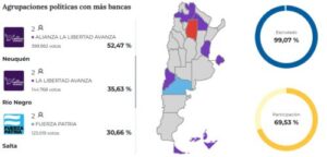 Tras los resultados electorales, La Libertad Avanza (LLA) se posicionó como la fuerza dominante en la Cámara de Diputados con 80 bancas propias y el apoyo de sectores del PRO y de un grupo de radicales, alcanzando un total de 113 escaños. Pese al avance, el oficialismo no logró el quórum propio y deberá negociar cada iniciativa con bloques intermedios.