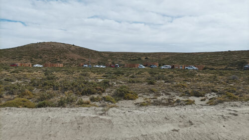 La jornada puede comenzar temprano en el Centro de Visitantes, instalado en el antiguo casco de la Estancia Monte León. Allí se registran los ingresos y se reciben indicaciones sobre los caminos habilitados e información sobre la marea. Una buena opción es visitar el Centro de Interpretación Ambiental, que funciona en el antiguo galpón de esquila de la estancia. El espacio exhibe información sobre los ecosistemas patagónicos y la historia del parque, además de promover prácticas de turismo sustentable. Desde allí parten senderos cortos hacia miradores naturales donde pueden observarse fósiles marinos y la transición entre la estepa y el mar. En el camino, abundan los coirones, matas negras y molles, especies típicas de la flora patagónica.