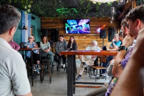 Durante el encuentro en la cervecería, se abordaron aspectos organizativos del Festival Río Gallegos, que será del 12 al 18 de diciembre en La Rural con el Patio Patagónico, shows, emprendedores y del 15 al 18 en el predio del Boxing Club, con la presencia de artistas nacionales.