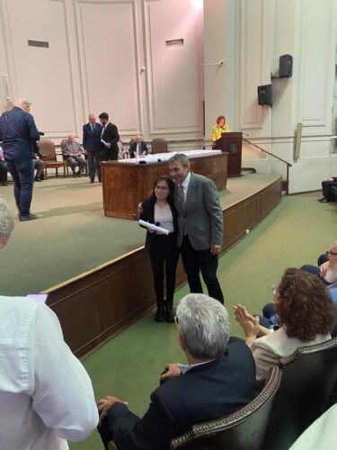 La ceremonia de entrega se realizó días atrás en el Aula Magna de la Academia Nacional de Medicina. Allí, Erika Bahamonde recibió su medalla y diploma acompañada por el ingeniero Carlos Castillo, en representación de la Facultad Regional Santa Cruz, y autoridades del Rectorado de la UTN, junto a más de 60 profesionales distinguidos de distintas instituciones del país.