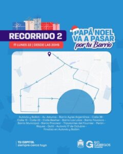 Río Gallegos vivirá este lunes una noche especial con la llegada de Papá Noel a los barrios de la ciudad. A partir de las 20:00, el tradicional personaje navideño recorrerá distintos sectores llevando alegría, regalos y espíritu festivo a niñas, niños y familias.