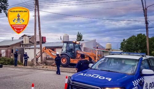 El operativo se desarrolló de forma conjunta con trabajadores de la empresa Camuzzi, quienes requirieron el uso de maquinaria pesada para acceder al caño dañado y llevar adelante las tareas de obturación. También colaboraron en el lugar personal de Tránsito Municipal y efectivos de la comisaría local, quienes dispusieron cortes de calles para garantizar la seguridad.