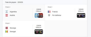 Argentina integra el Grupo J junto a Argelia, Austria y Jordania. El debut será el martes 16 de junio ante Argelia en Kansas City. El segundo choque será el lunes 22 frente a Austria en Dallas y el cierre del grupo se disputará el sábado 27 ante Jordania, también en Dallas.
