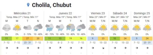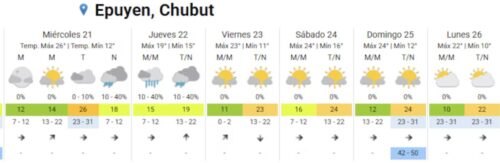 El pronóstico meteorológico para la región cordillerana anticipa más complicaciones. En Esquel, se esperan tormentas aisladas durante la tarde y noche del miércoles, mientras que el jueves se prevén lluvias y actividad eléctrica.