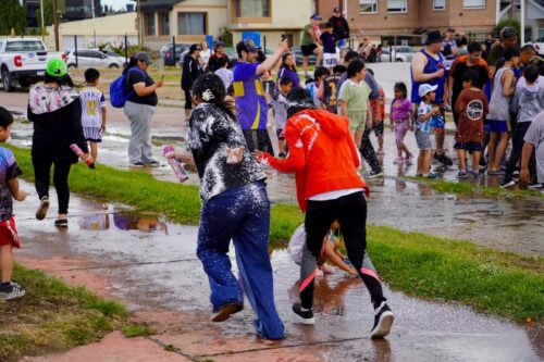 La actividad fue impulsada por la Casa de la Juventud y organizada por el Municipio, y consistió en una gran guerra de bombitas de agua distribuida en distintas estaciones de juego. Niños, niñas y adultos se sumaron al juego, entre corridas, risas, chorros de agua y hasta espuma en aerosol, disfrutando de una jornada al aire libre en un entorno cuidado y seguro.