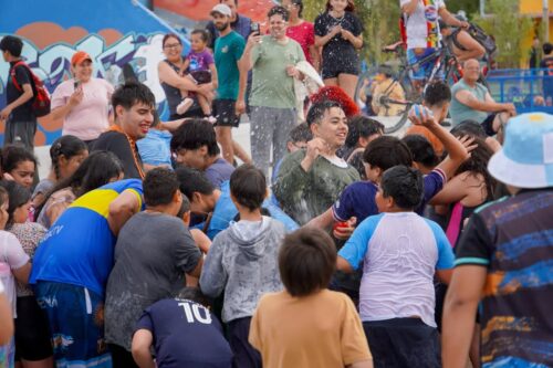 Las imágenes que dejó el encuentro reflejaron el clima festivo: familias completas compartiendo la tarde, chicos empapados y felices, colores por todos lados y un espacio público lleno de vida, aprovechado al máximo en uno de los días más calurosos del verano.