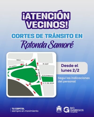 La Municipalidad de Río Gallegos informó que a partir del lunes 2 de febrero se implementarán cortes de tránsito en la rotonda Samoré, en el marco de las obras que se están llevando adelante para la transformación de la Autovía 17 de Octubre en avenida.