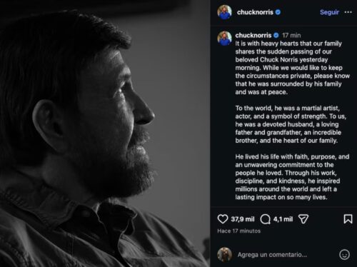 Fue a través de las redes sociales de Chuck Norris que su familia confirmó la muerte del actor y artista marcial (Créditos: Instagram/Chuck Norris)