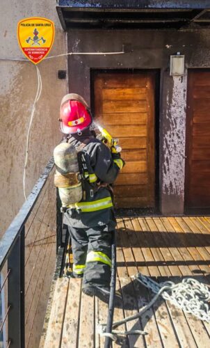 Si bien la propietaria intentó controlar las llamas en una primera instancia, al arribar al lugar los bomberos realizaron tareas de enfriamiento con línea devanadera y procedieron a la remoción de restos con herramientas específicas, con el objetivo de evitar la reactivación del fuego.